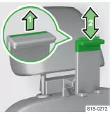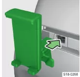 Die Sicherungslascheherausziehen und denoberen Teil des Haltersin die gewünschte Positionverschieben.Die Minimalgröße des leeren Halters einstellen, um Störgeräusche während der Fahrt zu vermeiden.