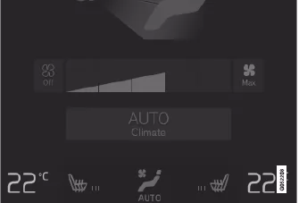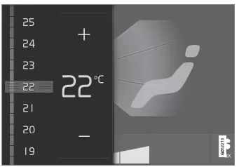 1. Tippen Sie in der Klimaleiste des Displays in der Mittelkonsole die Temperaturtaste für die Fahrerseite an, um den Regler aufzurufen.