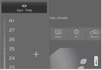 Die Synchronisierung wird durch einen weiteren Druck auf Temperatur synchronisieren oder durch ändern der Temperatureinstellungen für eine der anderen Klimazonen (Beifahrer, Fond) beendet.