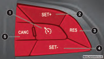 HINWEIS: Vor dem Drücken der Taste SET+ (Geschw. erhöhen) oder SET- (Geschw. verringern) muss das Fahrzeug mit gleichmäßiger Geschwindigkeit und auf ebener Strecke fahren.