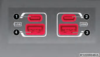 Diese befindet sich im vorderen Staufachbereich und erlaubt das Anschließen eines externen USB-Geräts oder eines elektronischen AUX-Geräts an Port oder Buchse.