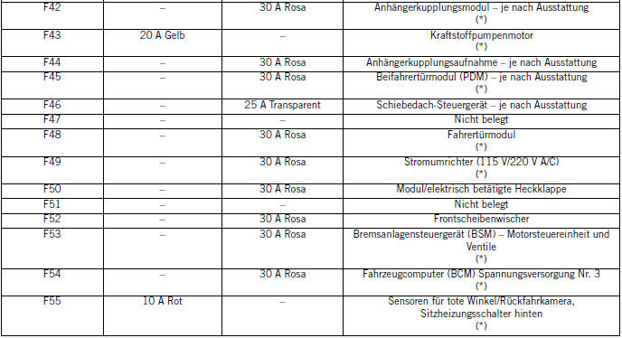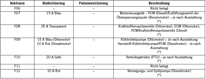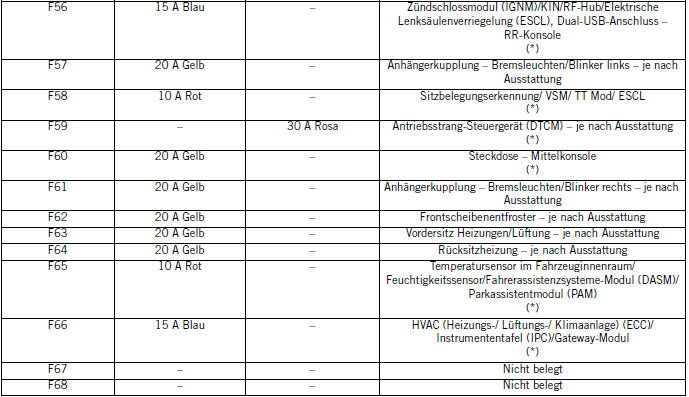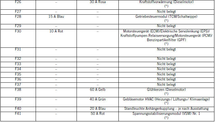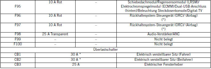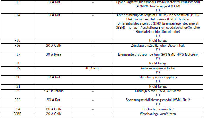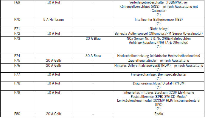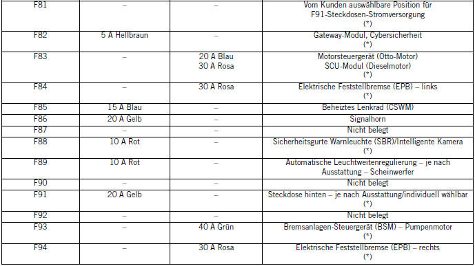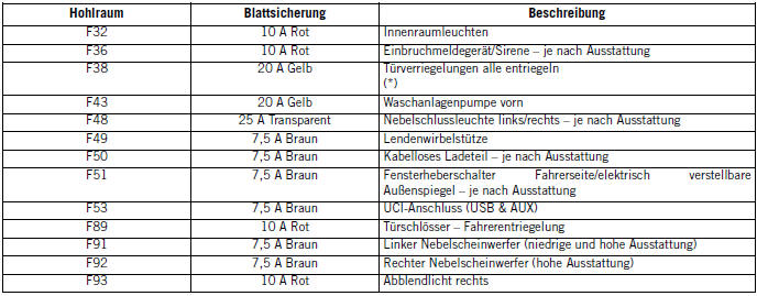 HINWEIS: Sicherungen für Sicherheitssysteme (markiert mit *) müssen von einem Vertragshändler gewartet werden.