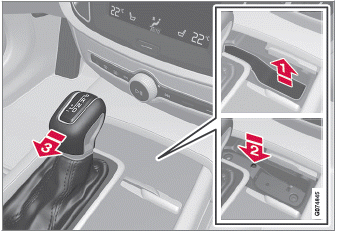 In Fahrzeugen mit großem Wählhebel kann die automatische Wählhebelsperre aufgehoben werden, wenn das Fahrzeug stromlos ist.