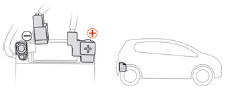 Der Minuspol der Batterie ist nicht zugänglich; daher befindet sich ein separater Massepunkt in der Nähe der Batterie.