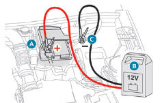 Aufladen der Batterie vorne mit einem Batterieladegerät