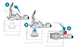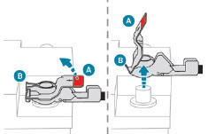 Minuspol (-) mit einem schwarzen Schnellverschluss.